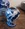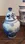 POTICH CHICO CERAMICA AZUL Y BLANCO " PLUMAS" - Alt. 16 cm