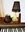 VELADOR "CABARET" PIE CRISTAL C/ PANTALLA NEGRO Y FLECOS 20 CM