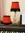 VELADOR "CABARET" PIE CRISTAL C/ PANTALLA ROJA Y FLECOS 20 CM