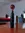 BOTELLA AZUL OSCURO TAPA ESFERA ROJA - 35 cm alt.